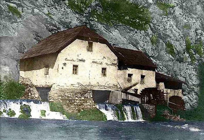 Naslovnica – Blaževića mlin, Sklop uz rujeku Sanu, u Ključu; mlina više nema, a uspomene žive.